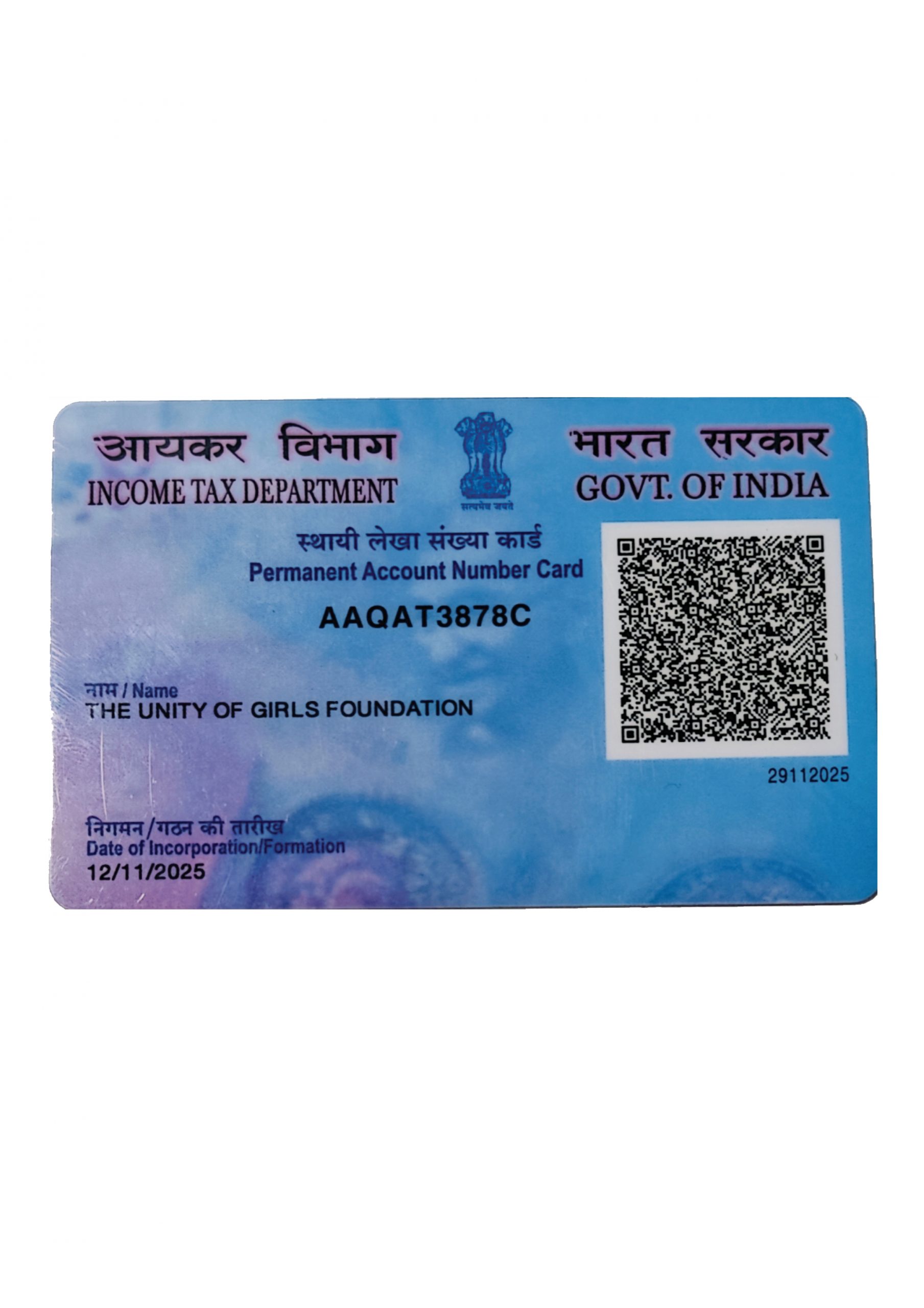 The Unity Of Girls Foundation – Pan Card